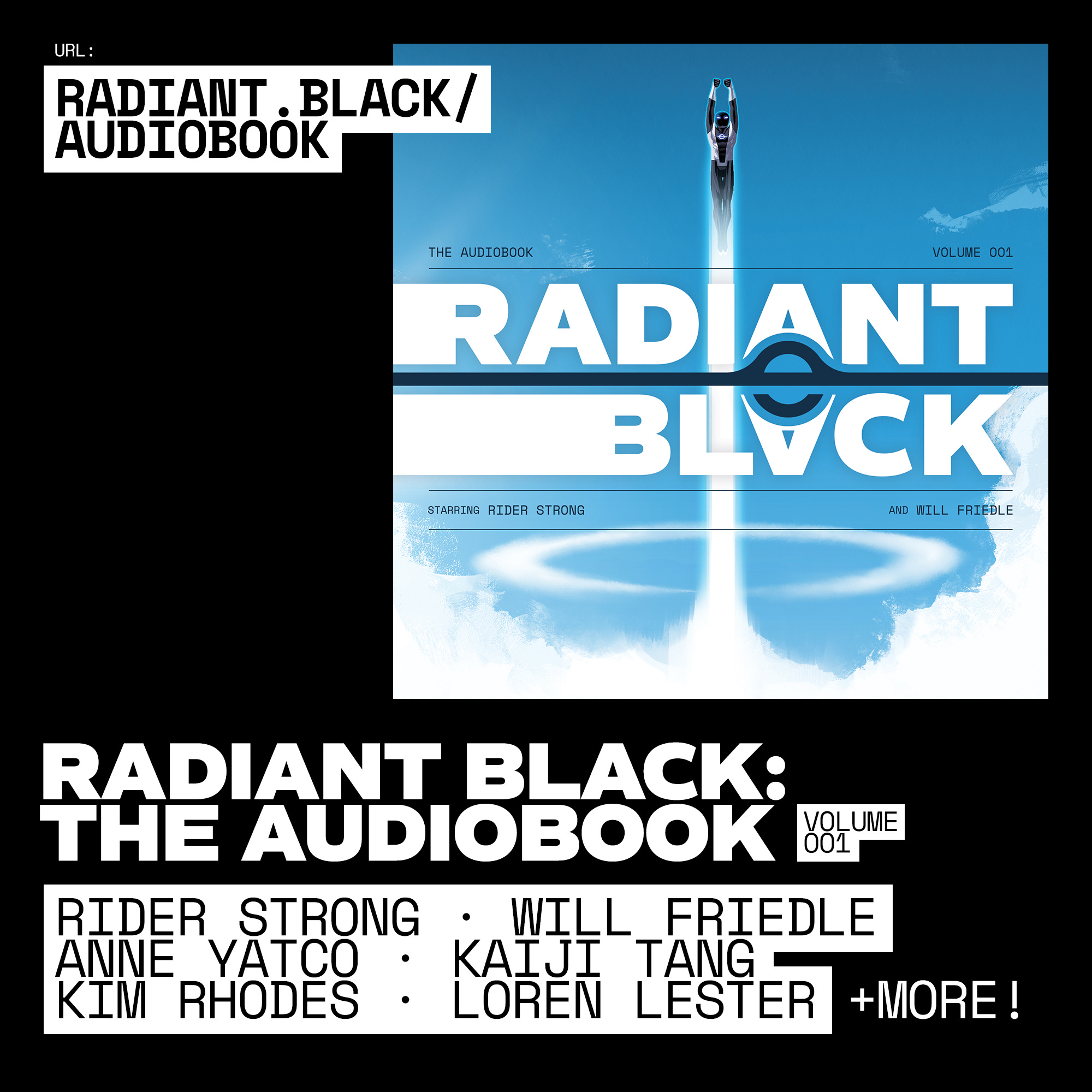 So, for this reason— and some other much cooler reasons, which I’ll get to in a second— I’m excited to announce that we’re also offering RADIANT BLACK: THE AUDIOBOOK: VOLUME ONE ourselves, through our own newly redesigned storefront. And, it’s available for pre-order— DRM free— RIGHT NOW!