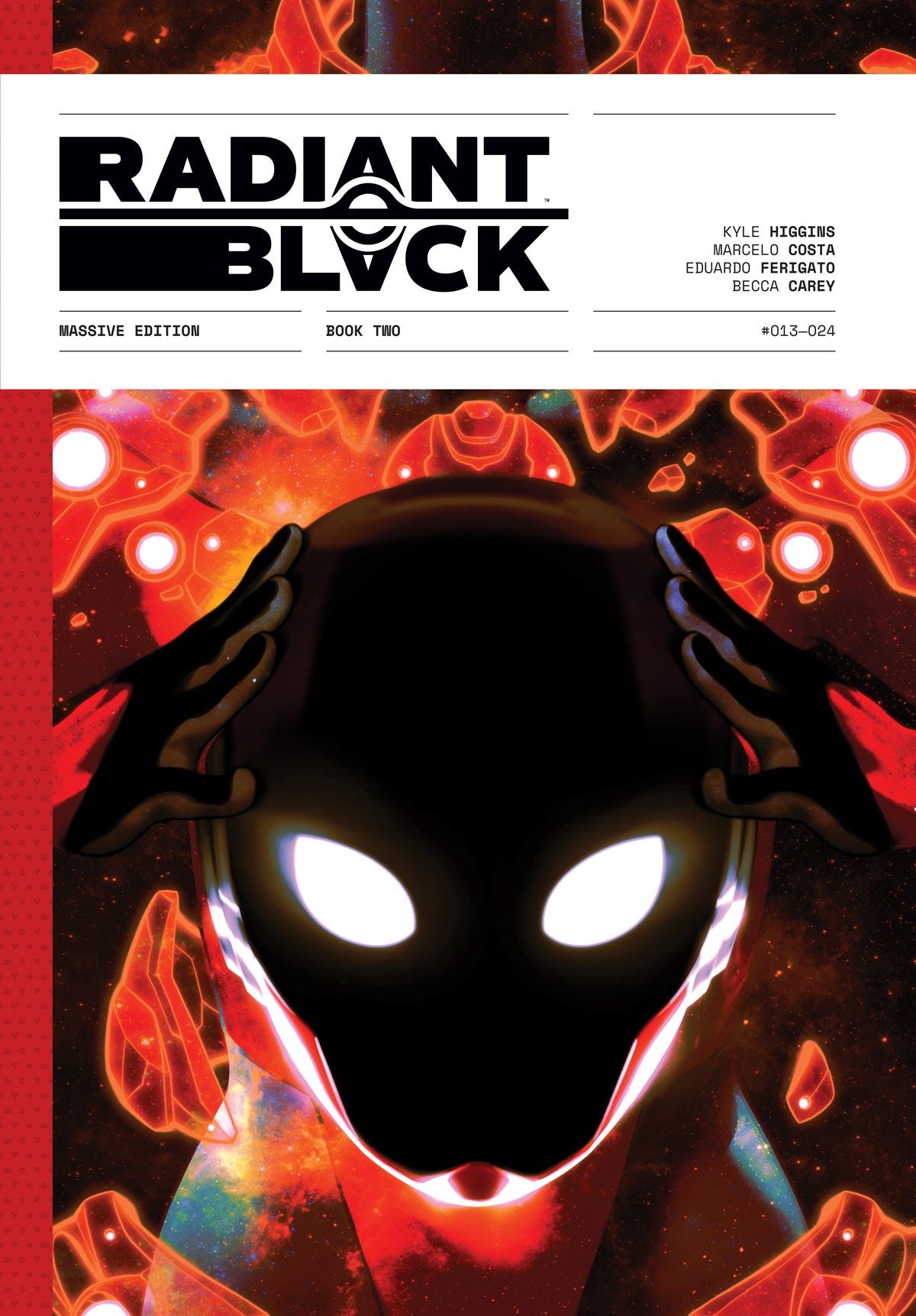 The Radiant Black: Massive Edition Book 2 Black Market Variant features an exclusive bookplate signed and numbered by co-creators Kyle Higgins and Marcelo Costa, as well as a gorgeous new dust jacket from Goni Montes!